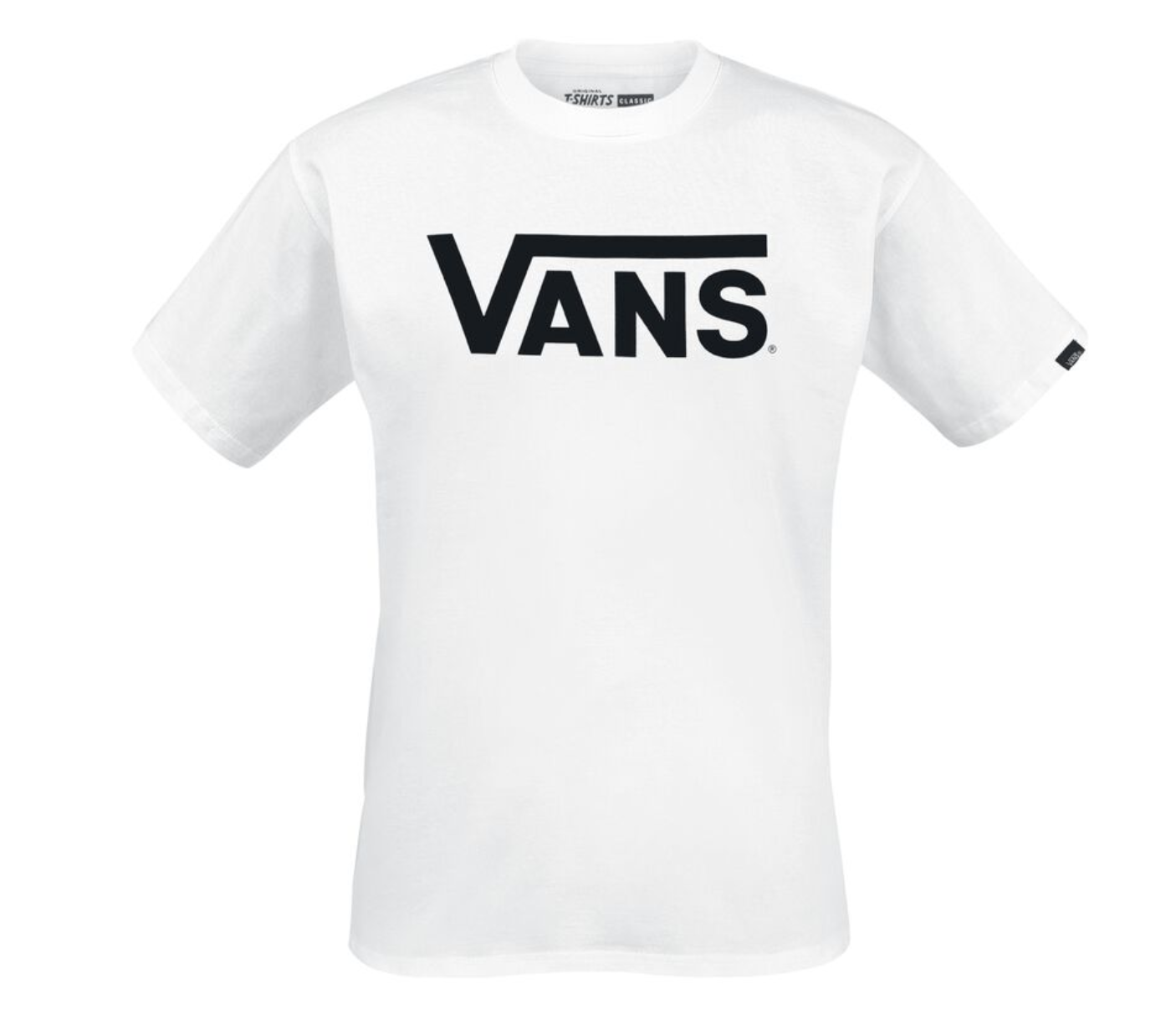 Camiseta Vans blanca con logotipo grande negro en la parte delantera